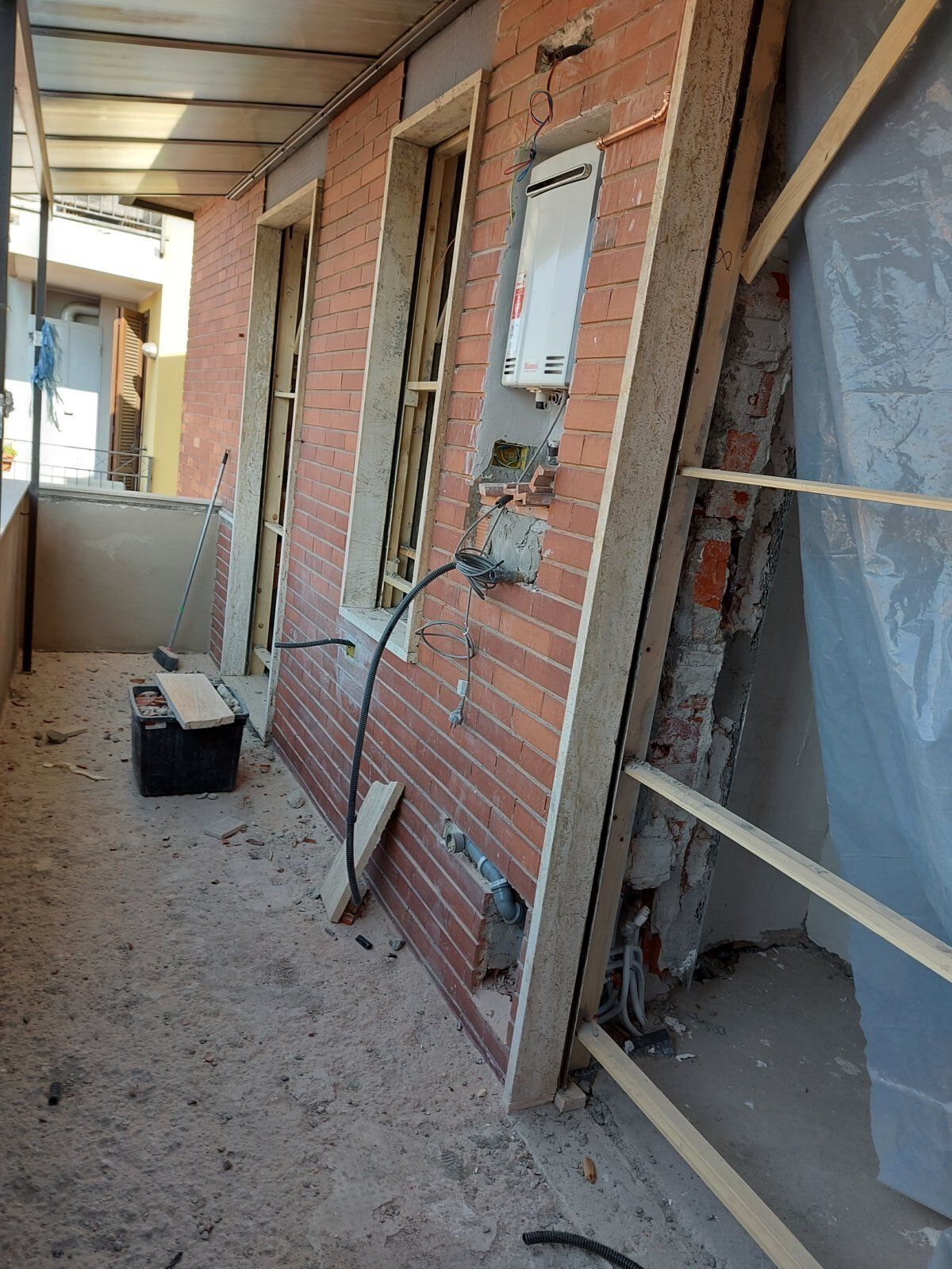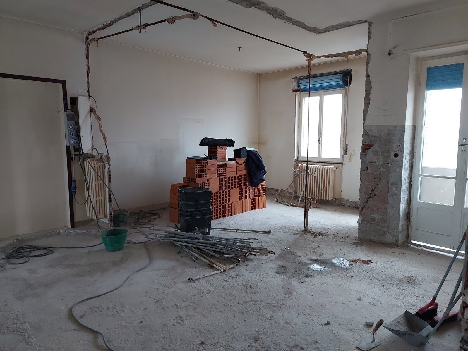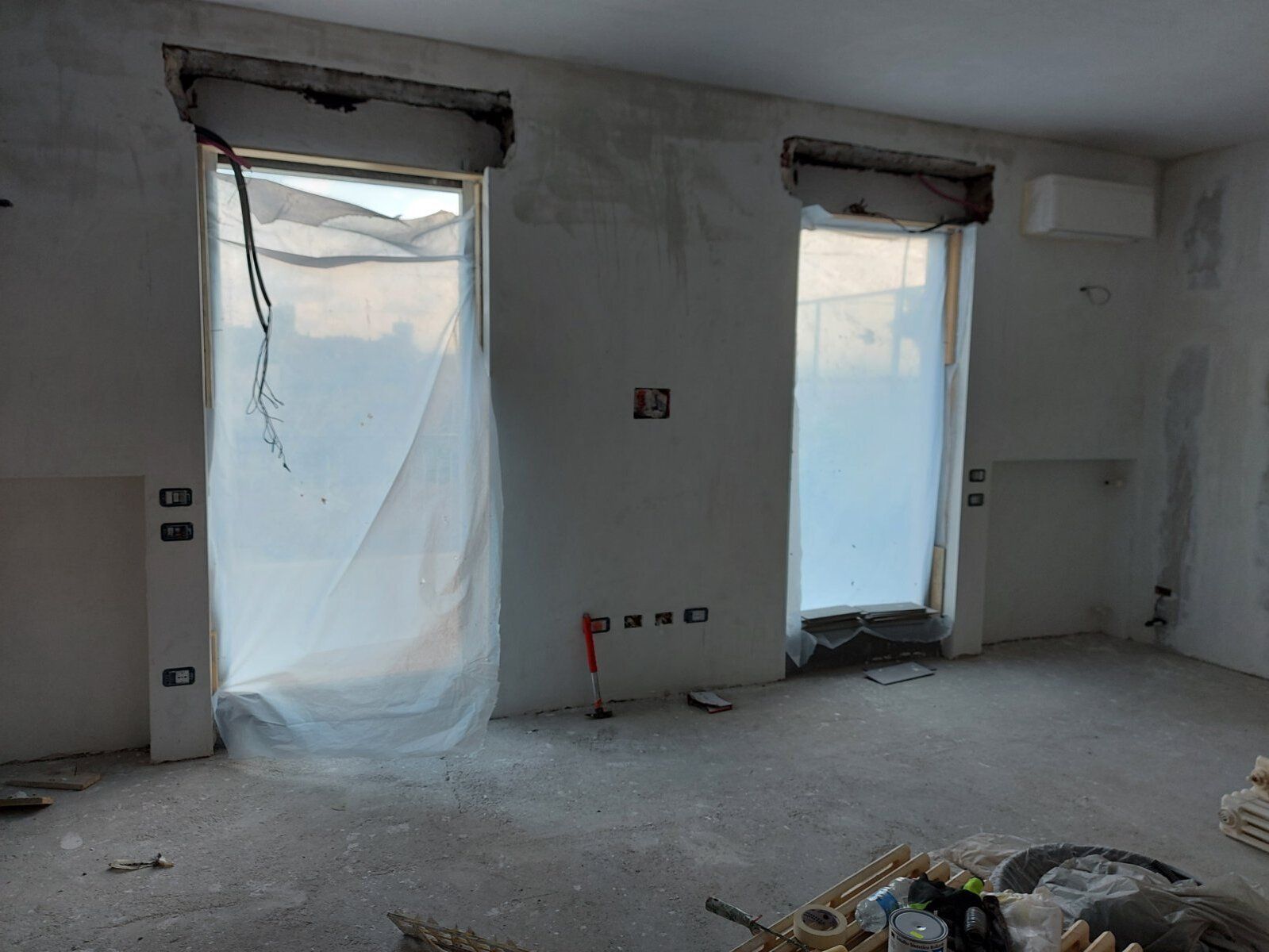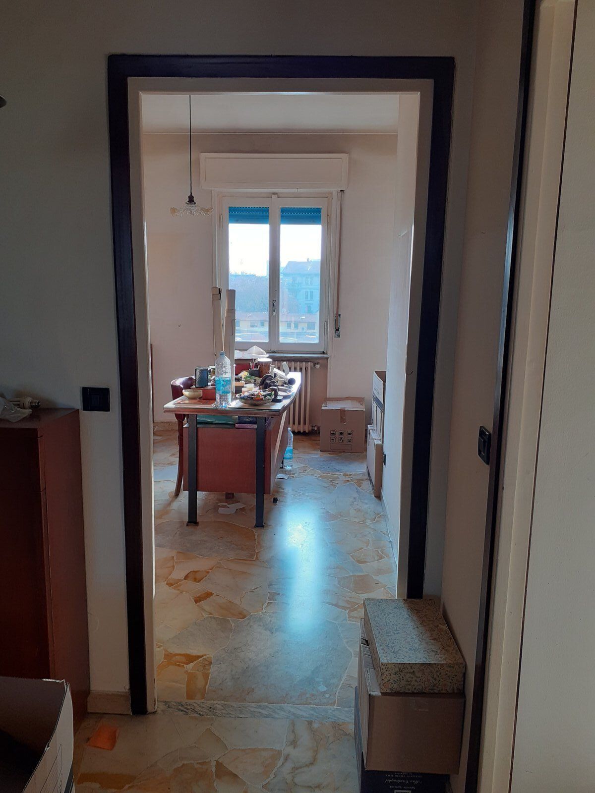 Intervento di fusione di due unità immobiliari, comprendente il rifacimento del layout interno con nuove suddivisioni degli spazi, sistemazione del terrazzo e balcone. Il tutto comprensivo di rifacimento degli impianti a servizio dei bagni e cucina, dell'impianto elettrico e completamento con le finiture in gres per i bagni.