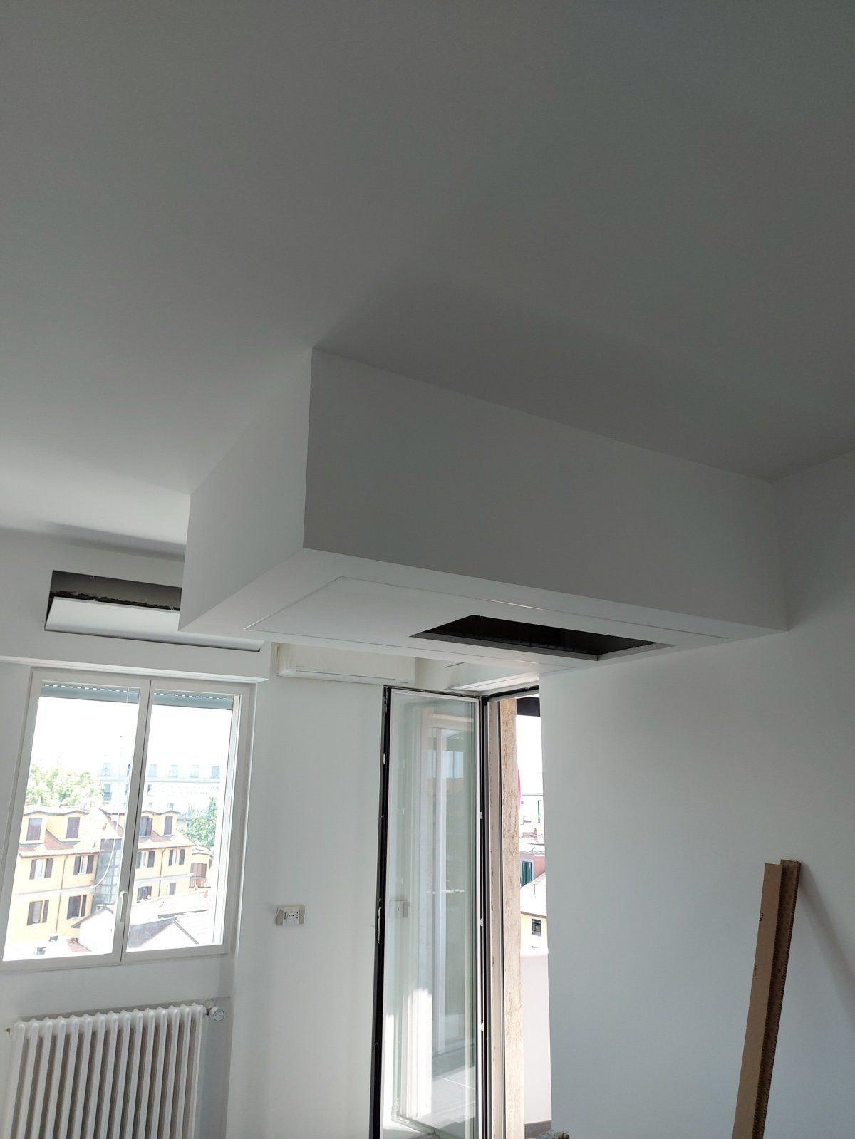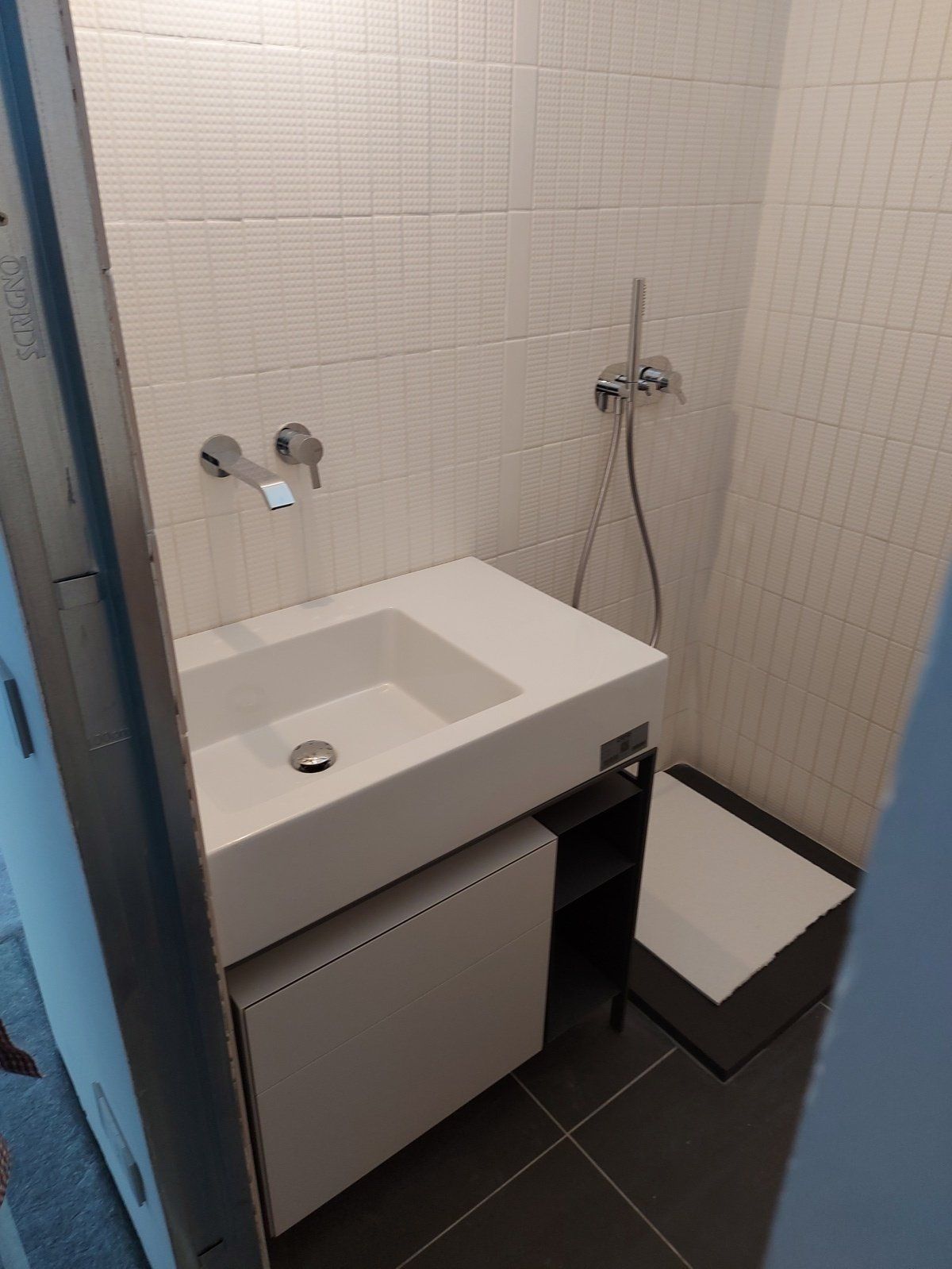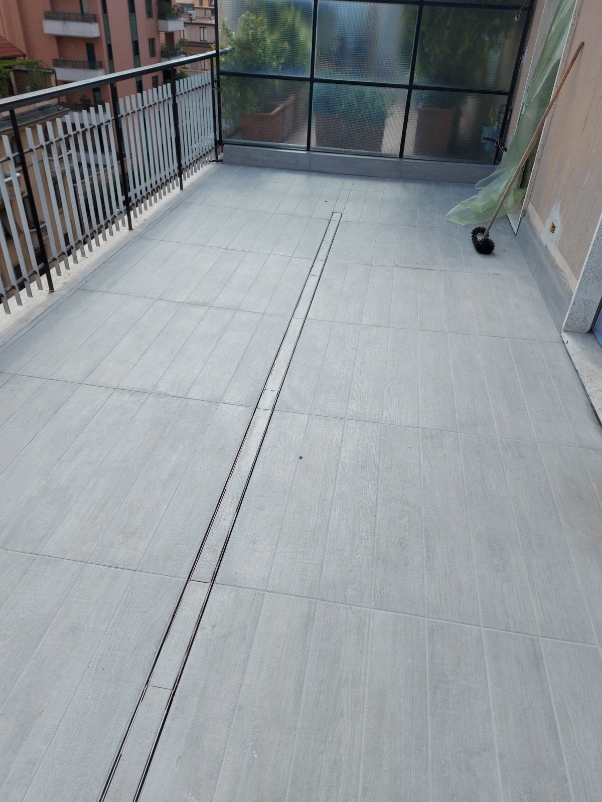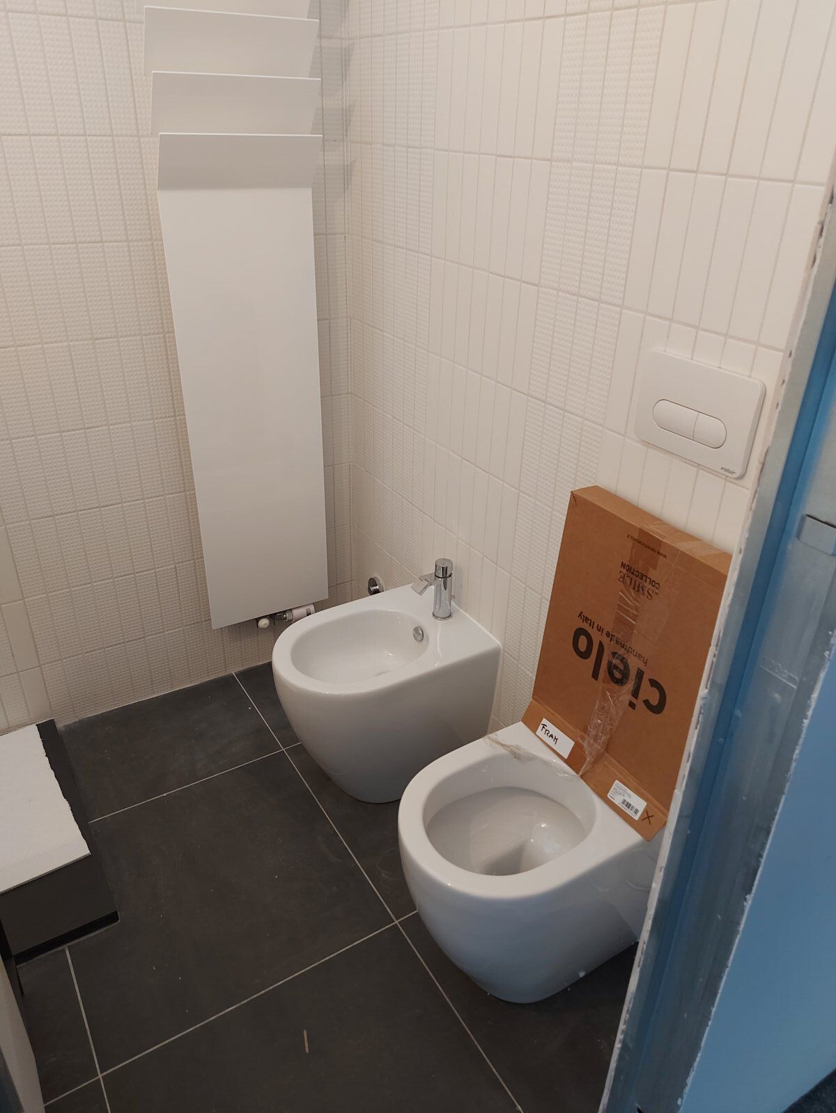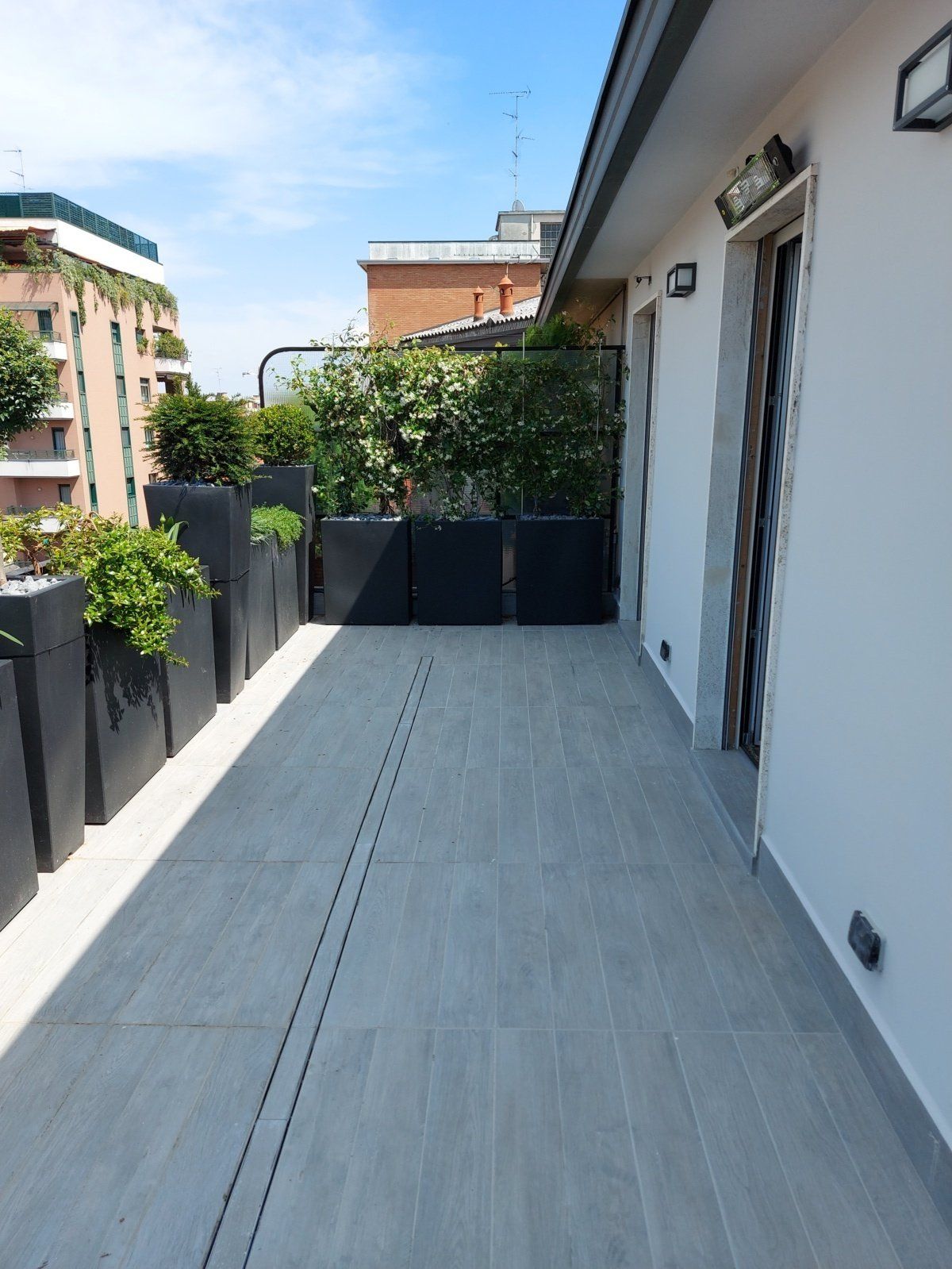 Intervento di fusione di due unità immobiliari, comprendente il rifacimento del layout interno con nuove suddivisioni degli spazi, sistemazione del terrazzo e balcone. Il tutto comprensivo di rifacimento degli impianti a servizio dei bagni e cucina, dell'impianto elettrico e completamento con le finiture in gres per i bagni.