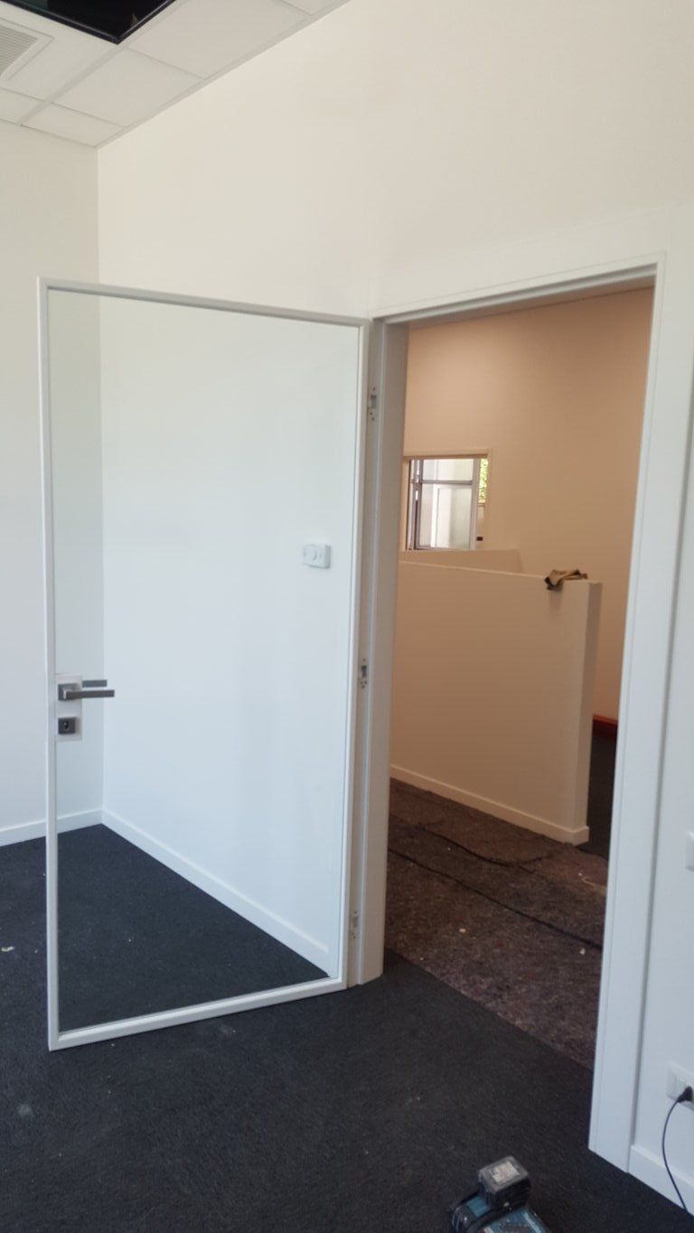Realización por ZERO, con la recuperación de una parte de un nuevo bloque de construcción para uso de oficina, que incluye un área de espacio abierto, oficinas y sala de reuniones y un bloque de inodoro relativo. Todo hecho con la ayuda de un piso elevado con acabado de alfombra, tabiques de pladur, tejas de fibra óptica, nuevas ventanas perimetrales con aislamiento relativo y compartimentación entre las áreas.