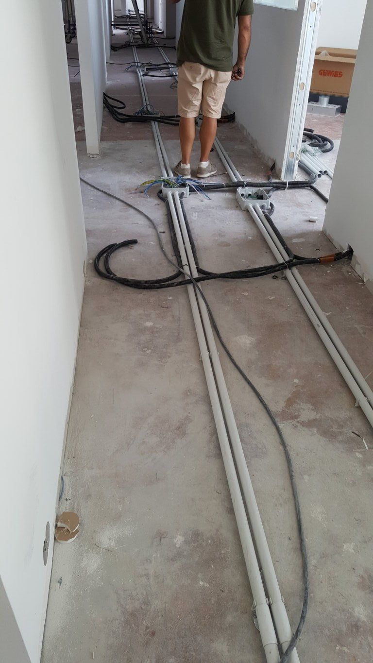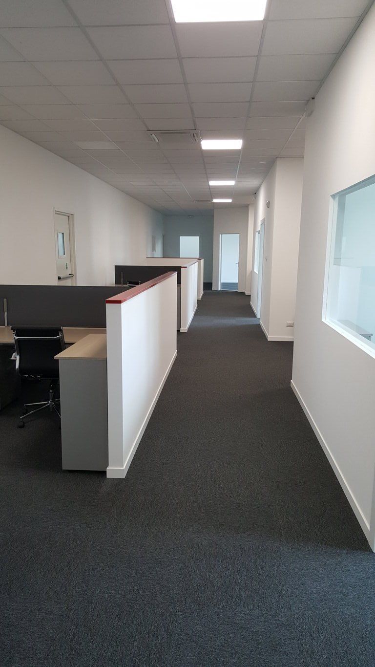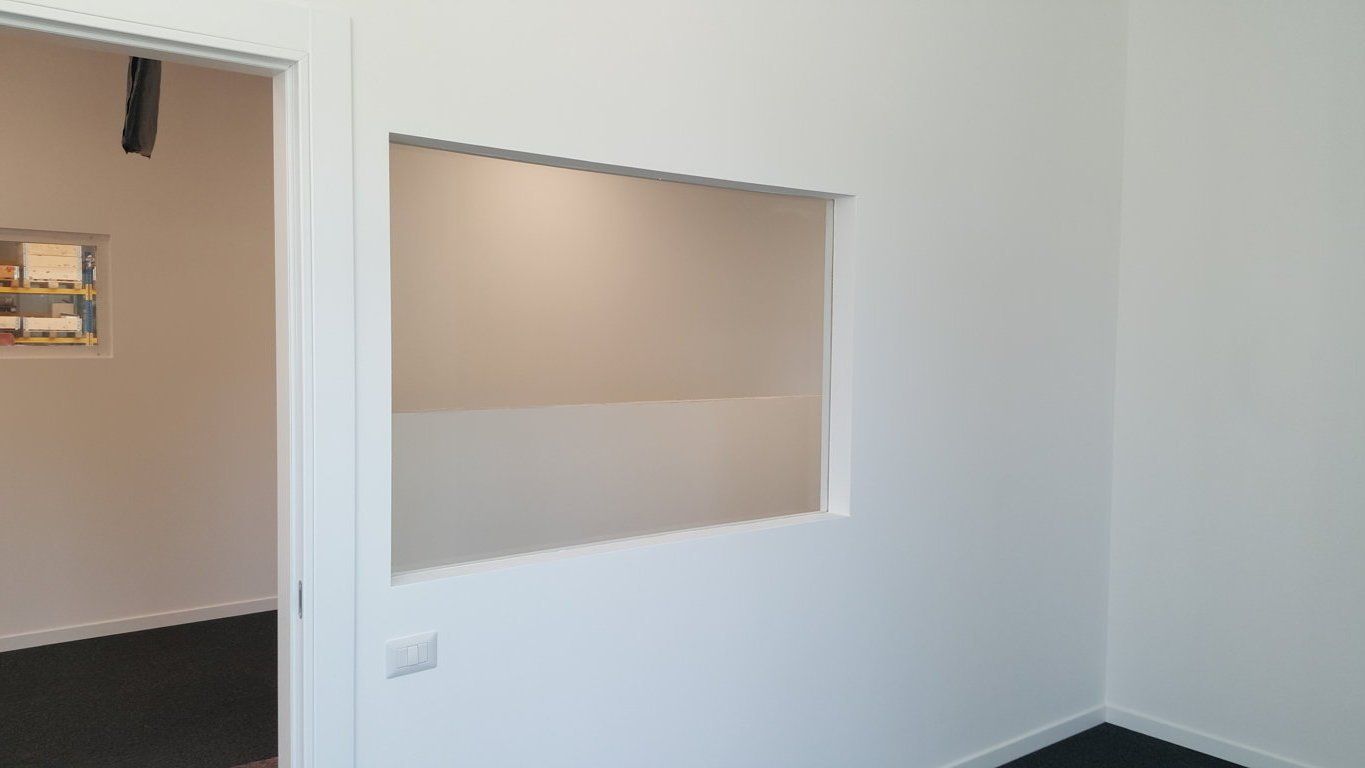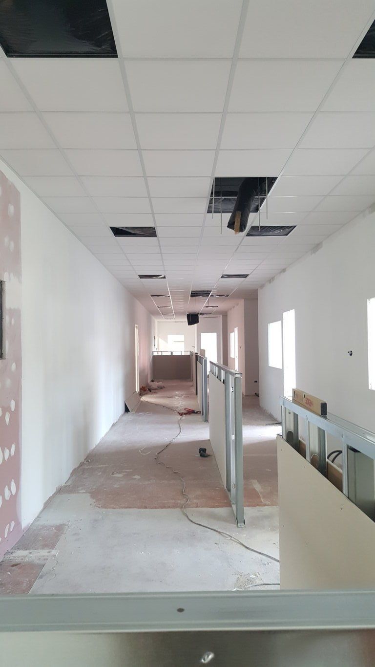 Réalisation de ZERO, avec récupération d'une partie d'un nouveau bloc de construction à usage de bureau, comprenant un espace ouvert, des bureaux, une salle de réunion et un bloc de toilettes. Tous ces éléments sont réalisés à l'aide d'un sol surélevé avec une finition moquette, de cloisons en plaques de plâtre, de dalles de plafond en fibre optique, de nouvelles fenêtres périphériques à isolation et cloisonnement relatifs.
