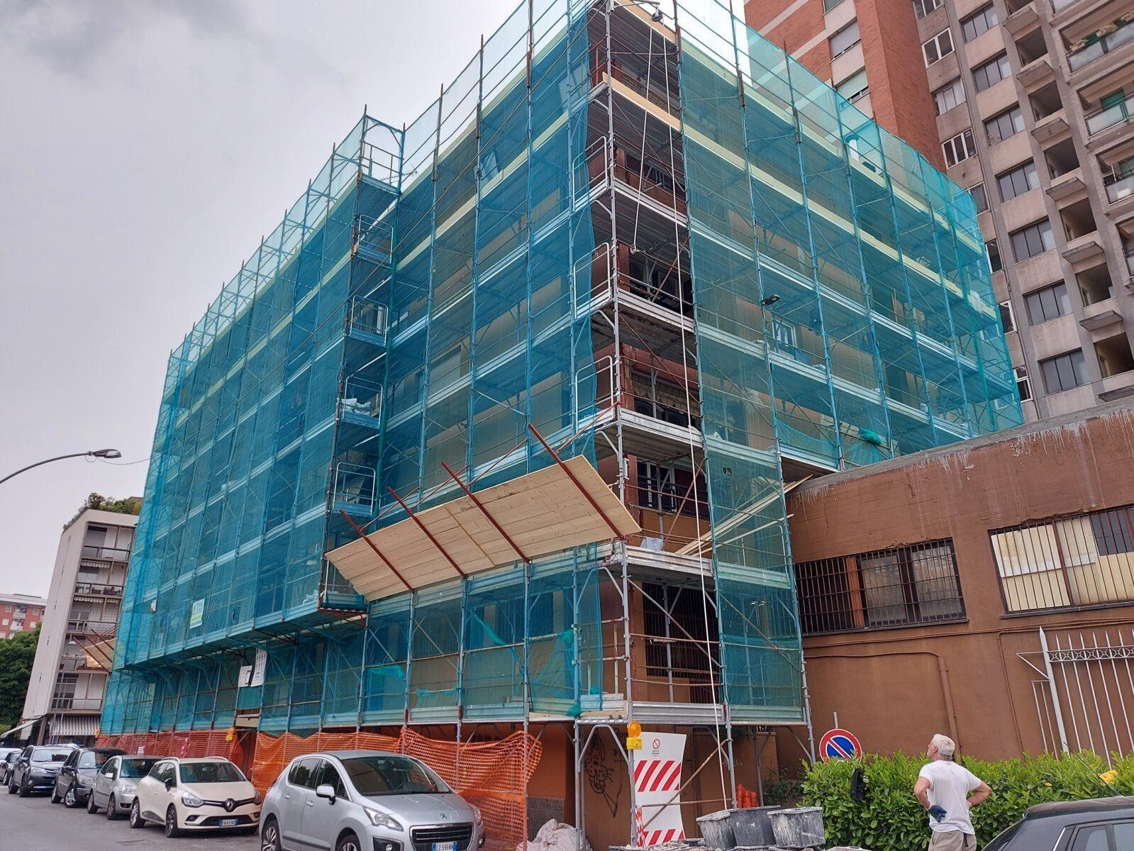 L'intervento ha interessato una palazzina di 4 piani fuori terra con opere di riqualificazione ed efficientamento energetico comprendente opere di isolamento esterno con cappotto isolante, manto di copertura e sistemazione dei balconi.