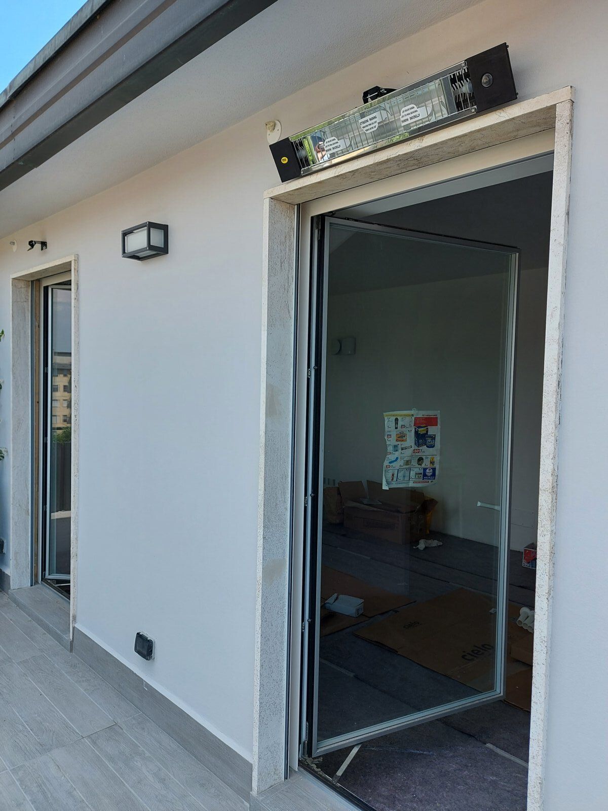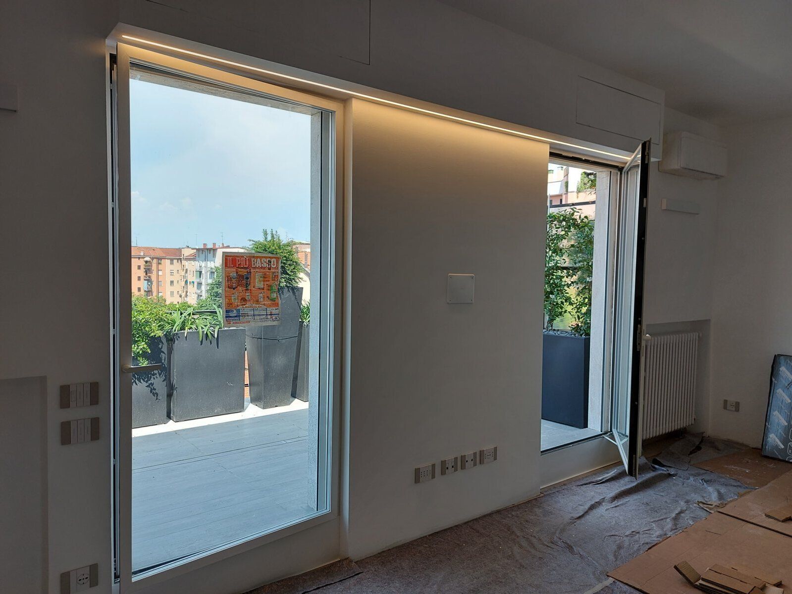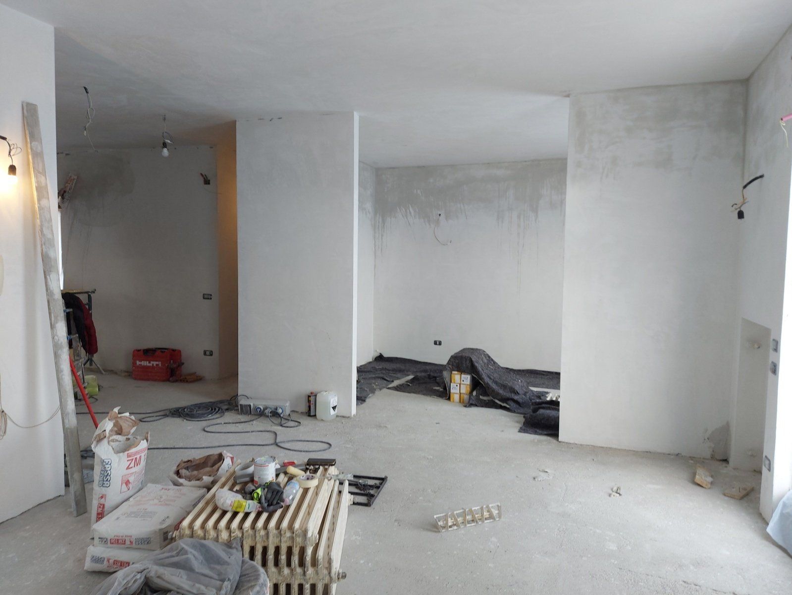 Intervento di fusione di due unità immobiliari, comprendente il rifacimento del layout interno con nuove suddivisioni degli spazi, sistemazione del terrazzo e balcone. Il tutto comprensivo di rifacimento degli impianti a servizio dei bagni e cucina, dell'impianto elettrico e completamento con le finiture in gres per i bagni.
