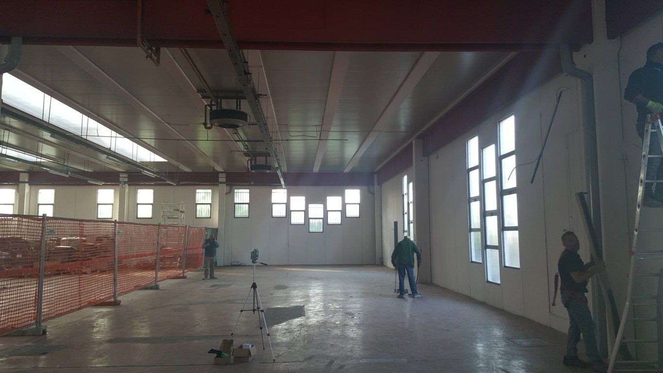 Realización por ZERO, con la recuperación de una parte de un nuevo bloque de construcción para uso de oficina, que incluye un área de espacio abierto, oficinas y sala de reuniones y un bloque de inodoro relativo. Todo hecho con la ayuda de un piso elevado con acabado de alfombra, tabiques de pladur, tejas de fibra óptica, nuevas ventanas perimetrales con aislamiento relativo y compartimentación entre las áreas.